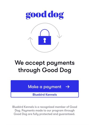 Deposit can be placed by cash (at home visit), Venmo, money order, check, Good Dog, or PayPal.